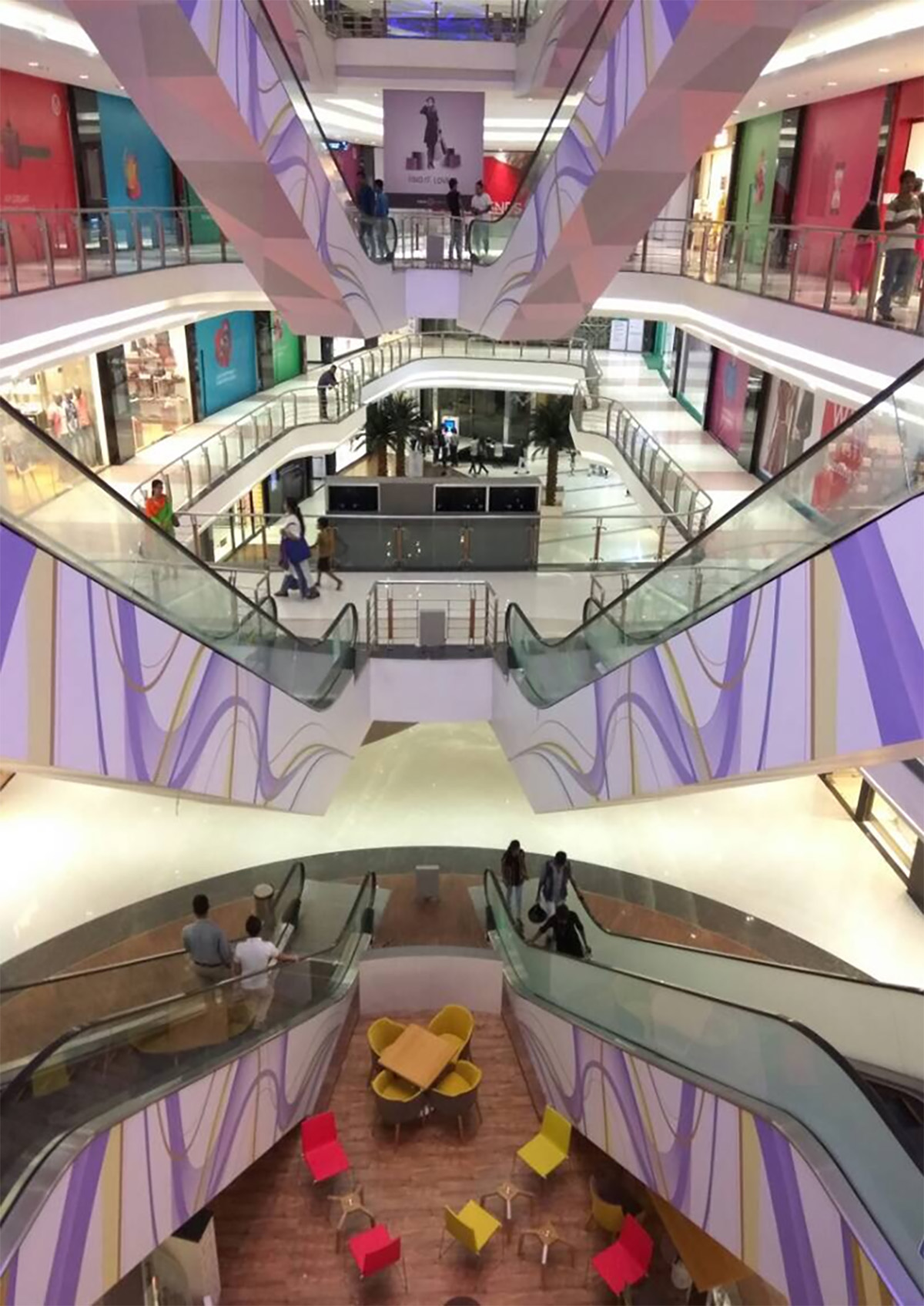This mall has been developed into a destination not only for locals but also for the nearby travel enthusiast from Darjeeling and Gangtok. The mall's design was focussed to make it as a very modern, state of art mall with lot of live screens which always keep on changing and hence make the common areas always very lovely. The mall, as the name suggest also has a star s t u d d ed / co n s t el l at i o n cei l i n g d es i g n conforming to the theme of the mall. Over all very young happening ambience which has attracted huge foot fall on daily basis.