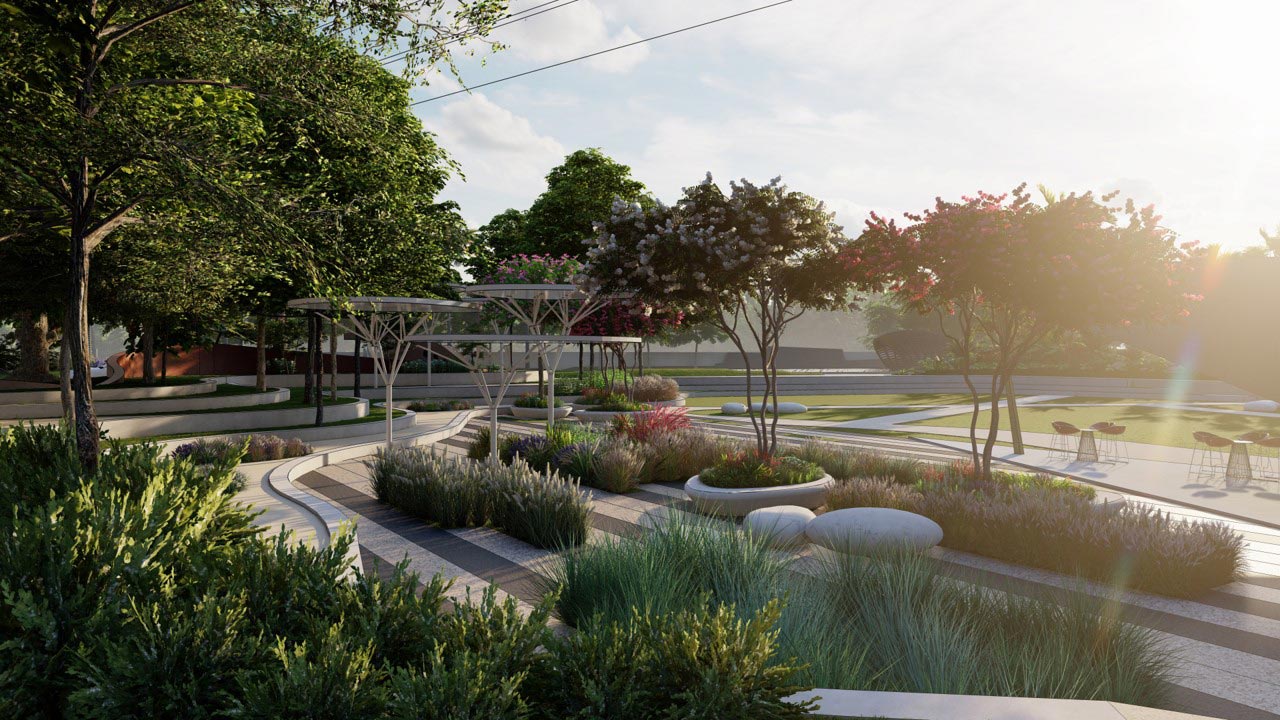 The site runs parallel to an active seasonal stream, providing riverine edge treatments and sponge landscapes along its banks, best experienced through a non- intrusive boardwalk. This approach aims to invigorate the mind, body, and spirit while promoting harmony with nature and enriching the overall environment.