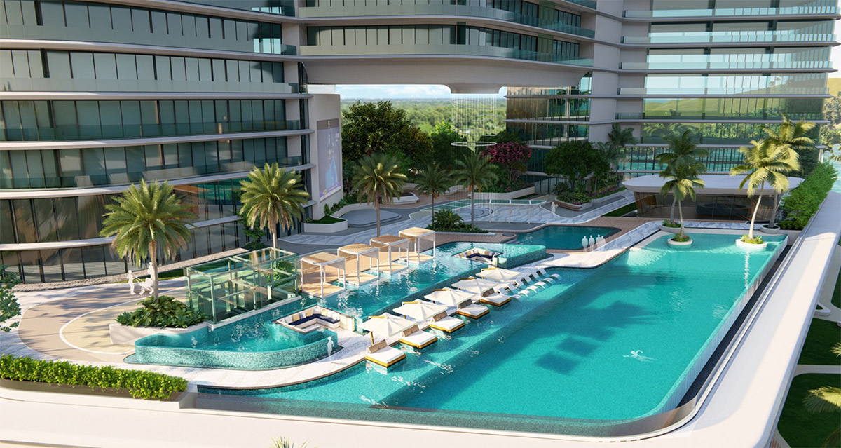 The architectural design offers multiple pool experiences and vibrant recreational decks. The property will be adorned with bars, pubs, and dance floors supported by state-of-the-art technology, including towering rain dance floors. Beachfront villas and hammocks shaded under coconut groves complete the high-energy yet tropical resort character.