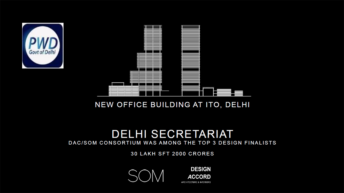 Client: Delhi GovernmentArchitects: DAC + SOM Design Proposal Area: 30 lakh Sq Ft Value: 2000 CroresStatus: Design Proposal