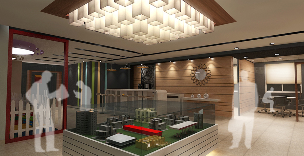 Embrace is the keyword to the interior design of this marketing office, with the milieu of the space to be very welcoming, warm and fresh. The solid wood panelling, the specially designed lighting chandelier over the model display area and the cafe are some of the noticeable design features of this project.