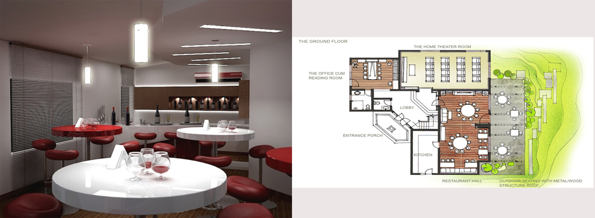 An existing farmhouse was converted to a club in Gurgaon, with a touch of modern classical interiors. Not much of the structural changes were done in the existing layout, however the interiors were done tastefully.