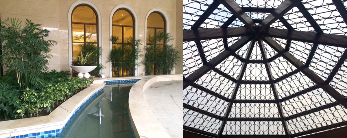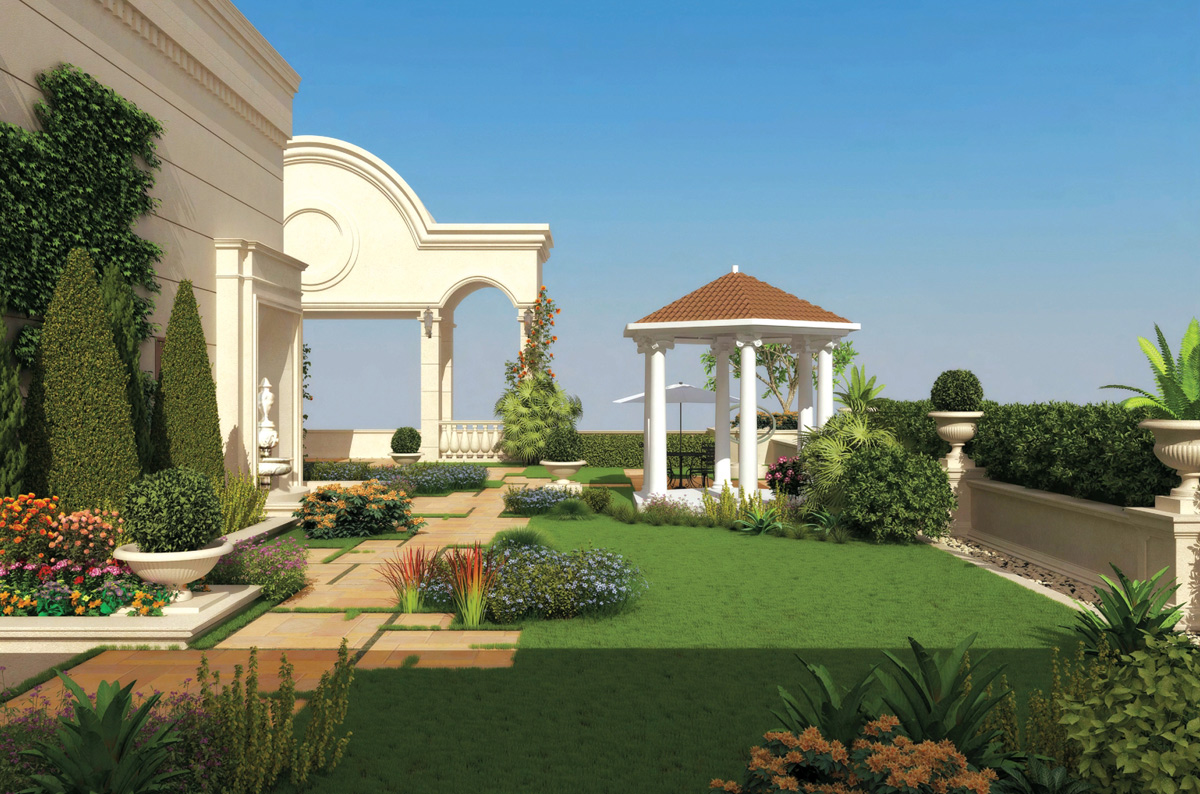 With its distinct European touch, the hotel exudes exclusivity and style, starting with the arrival experience at its ground level. The rich cobbled drive-in porch, the soothing sound of water overflowing from a stone-cut urn, and carefully selected exotic plants wrap the space in elegance. The landscape unfolds across multiple levels of the tower, including the 8th, 27th, 48th, and 53rd floors, culminating in a grand European-style terrace designed for the penthouse. The intricate motif design of the pool, complemented by a classical semi-circular arbor, stone-cut pottery, and elegant outdoor furniture, offers a truly rejuvenating experience. Atop the terrace, an elaborate English garden—with classical cabanas, an observatory point, water spouts, and a vibrant palette of plantings—creates a sense of being literally on top of the world.