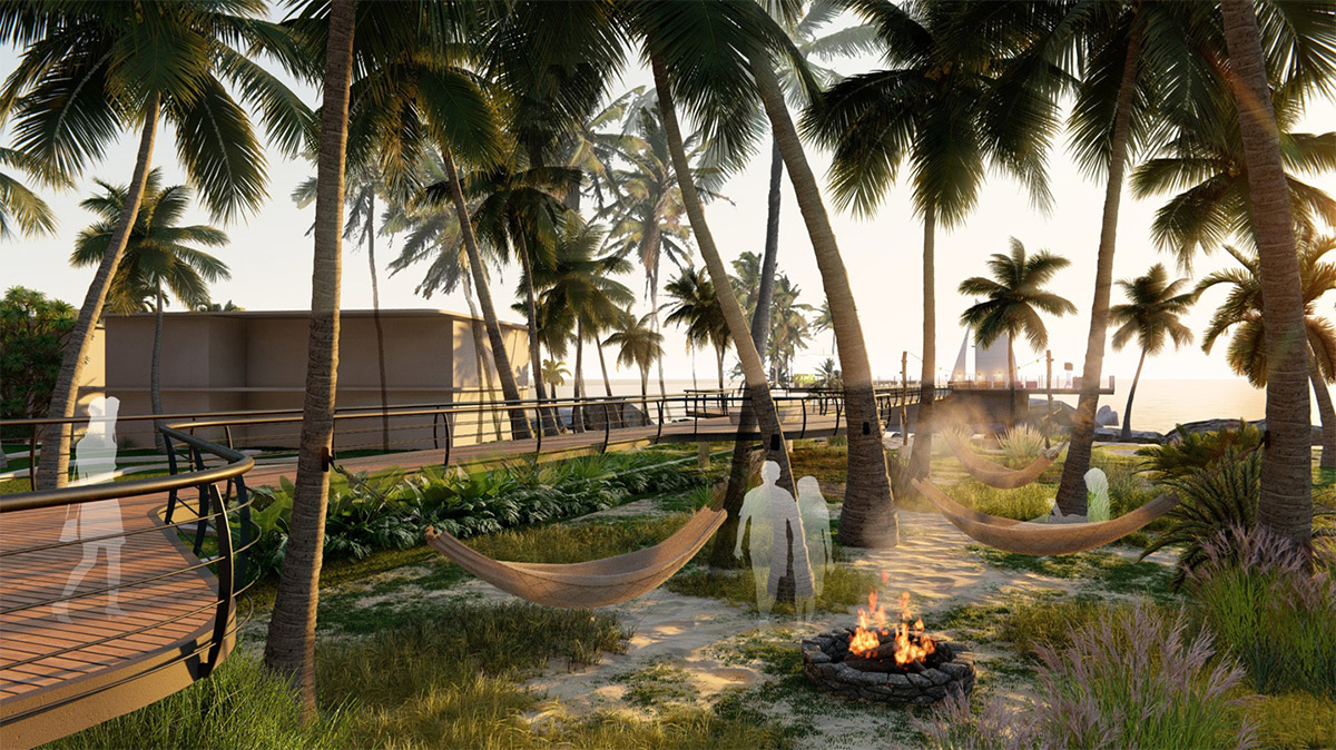 The architectural design offers multiple pool experiences and vibrant recreational decks. The property will be adorned with bars, pubs, and dance floors supported by state-of-the-art technology, including towering rain dance floors. Beachfront villas and hammocks shaded under coconut groves complete the high-energy yet tropical resort character.